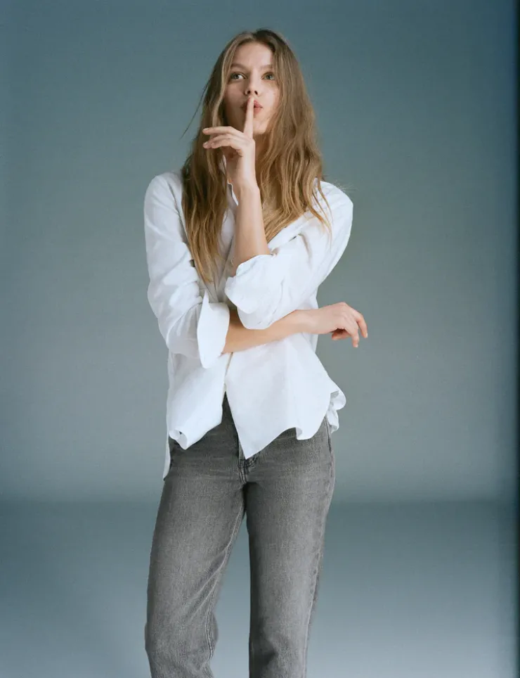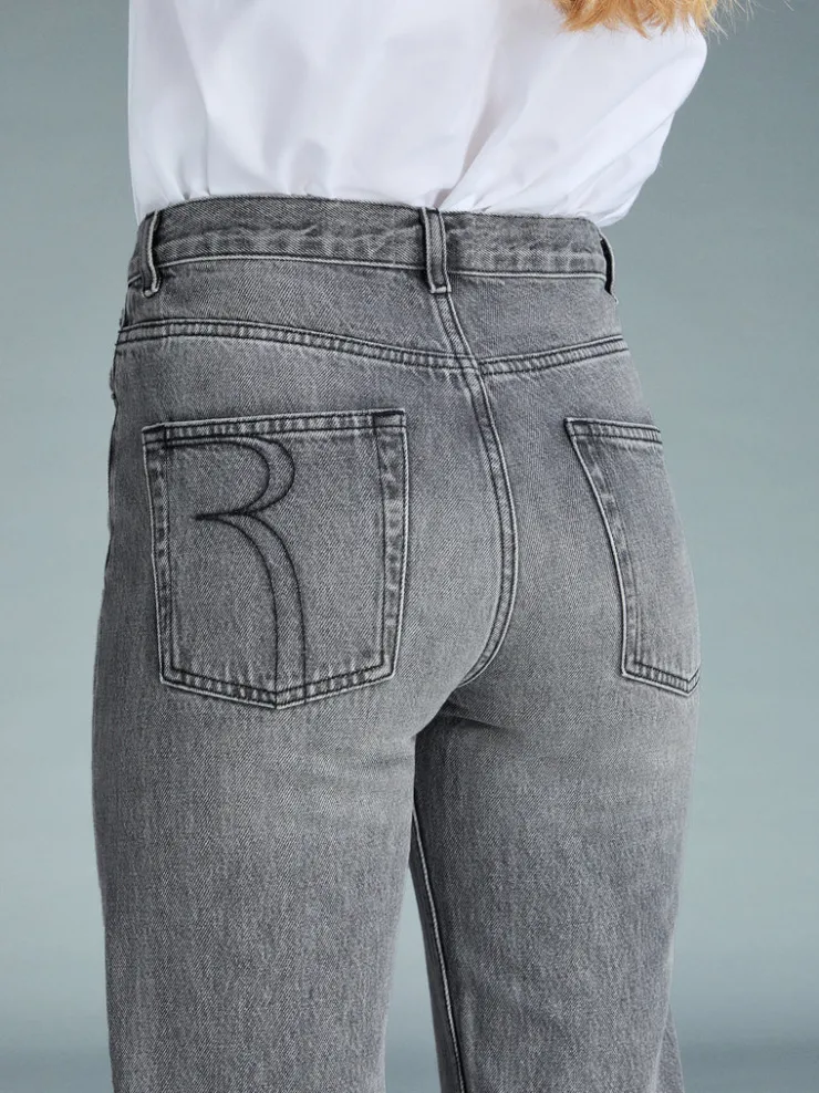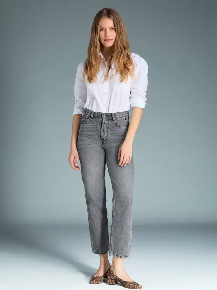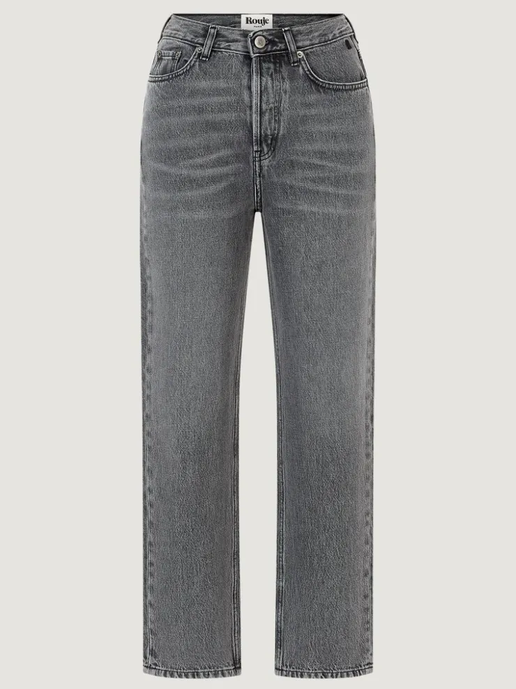 Jean droit taille haute.Coloris noir délavéTaille haute et coupe droiteLongueur 7/85 pochesFermeture à boutonsBroderi…