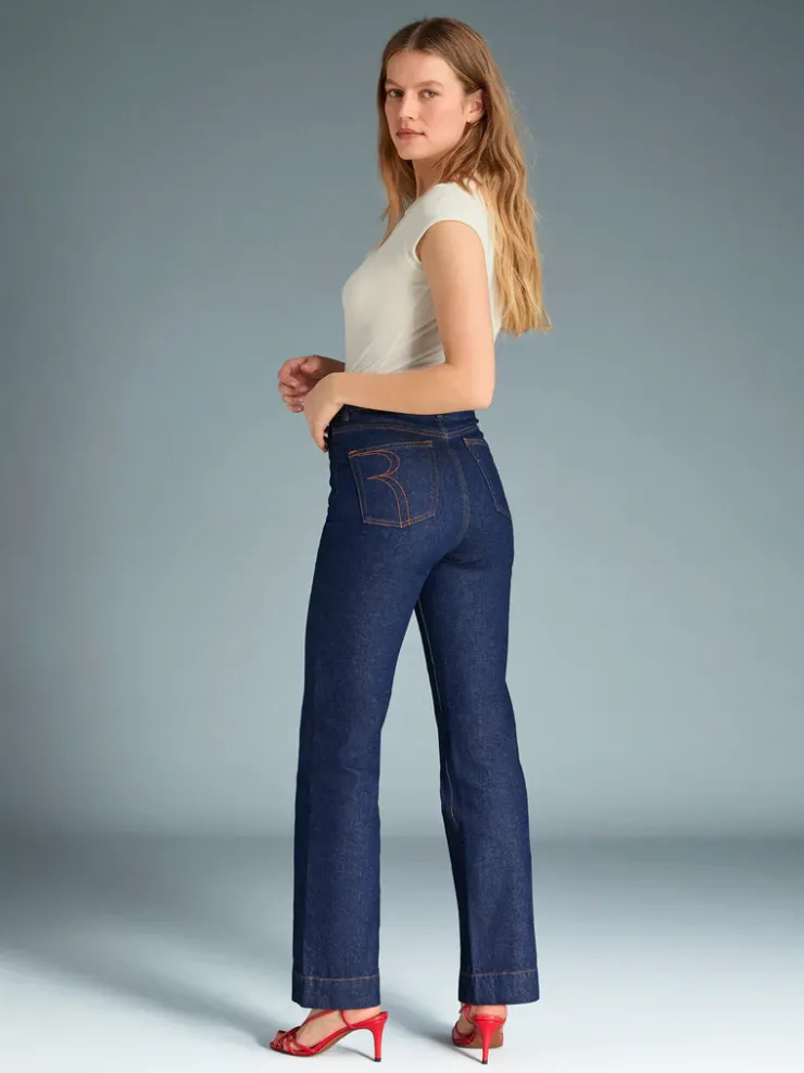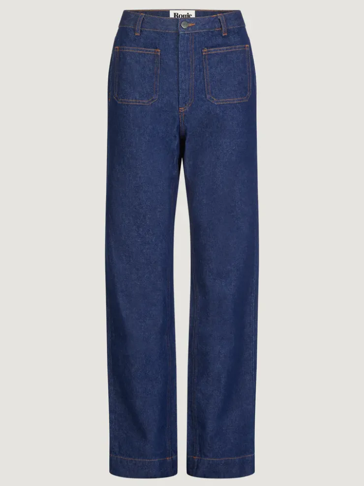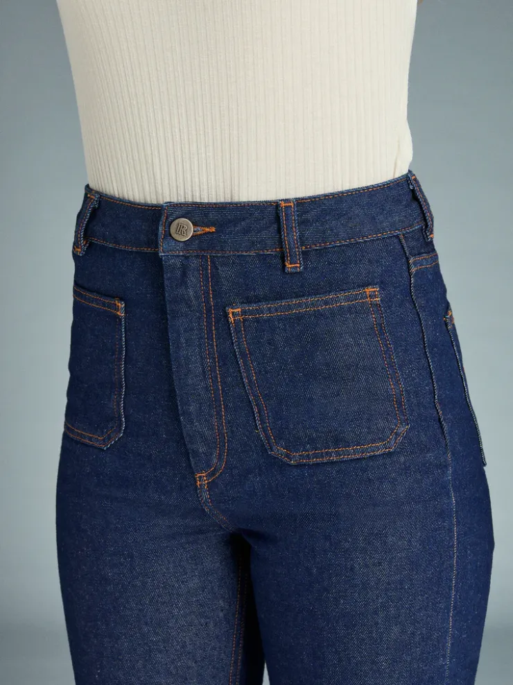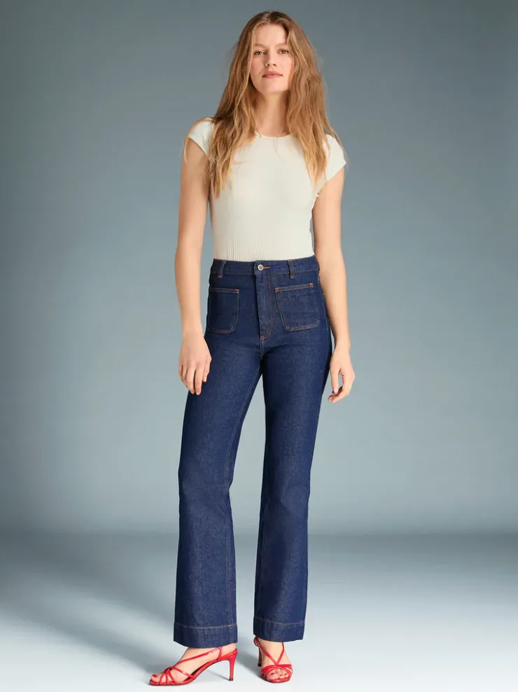Jean taille haute avec poches à l’avant.Coloris brutToile épaisseLégèrement évasé au niveau des jambesPoches plaqu…