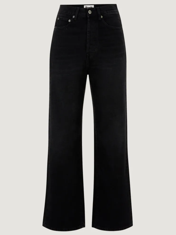 Jean flare taille haute.Coloris noir stoneJeans bootcut – longueur 7/85 pochesFermeture à boutonsBroderie « R » sur la po…