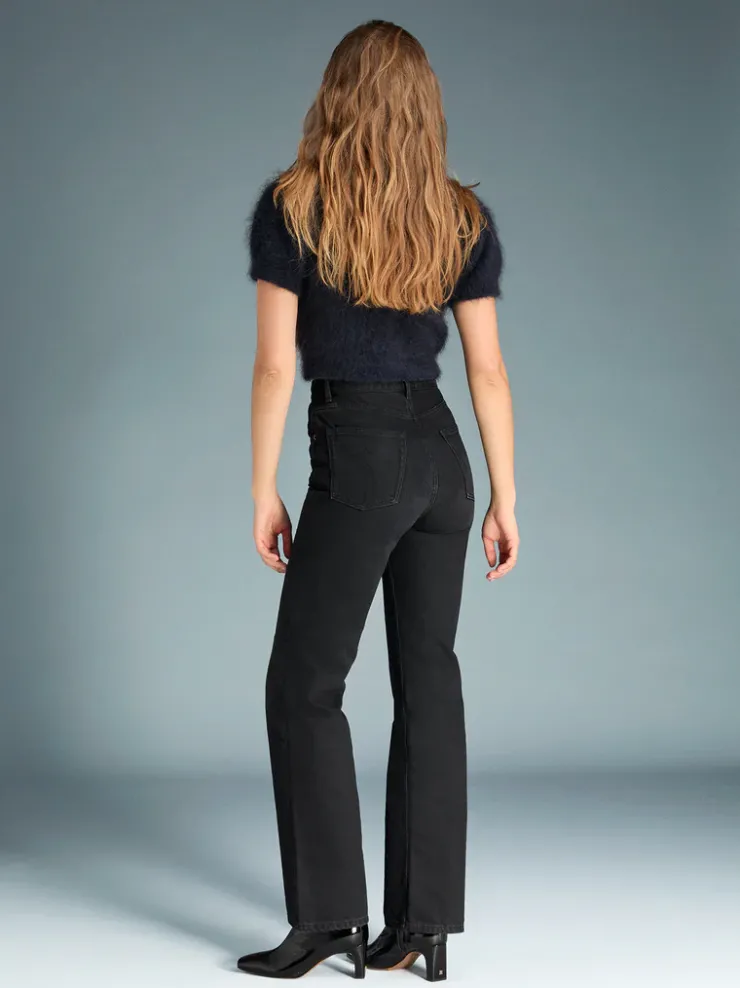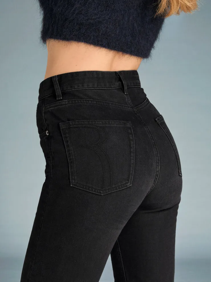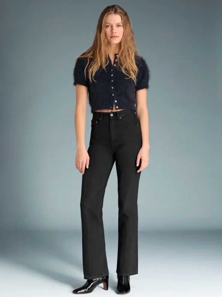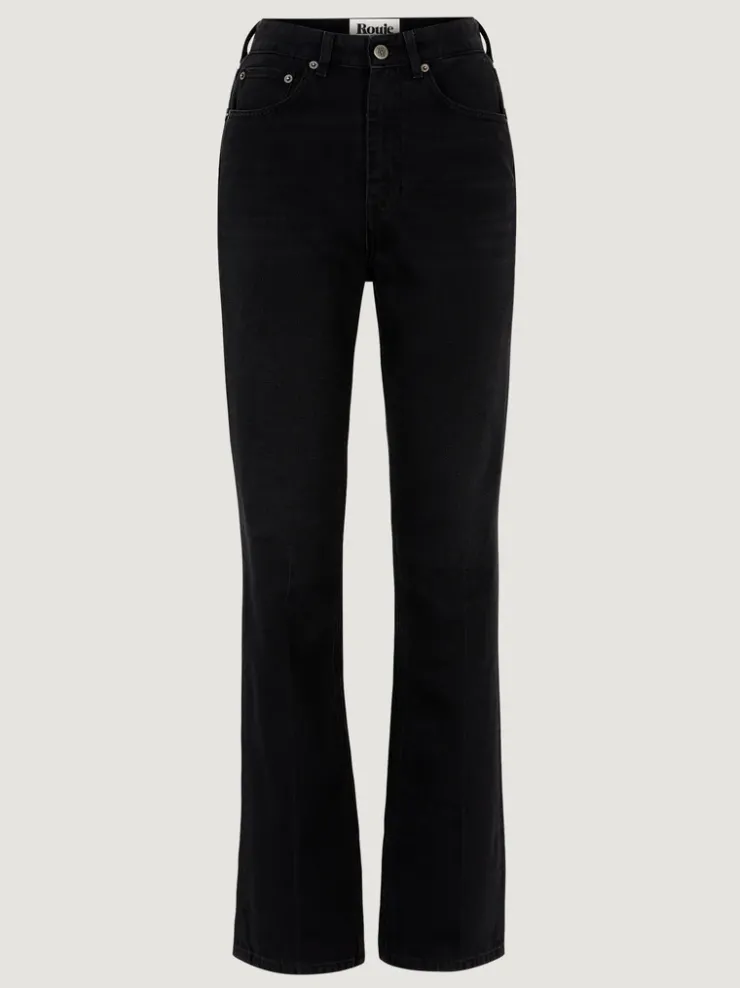Jean flare taille haute.Coloris noirTaille haute et évasé au niveau des jambesJambes marquées d’un pli marq…