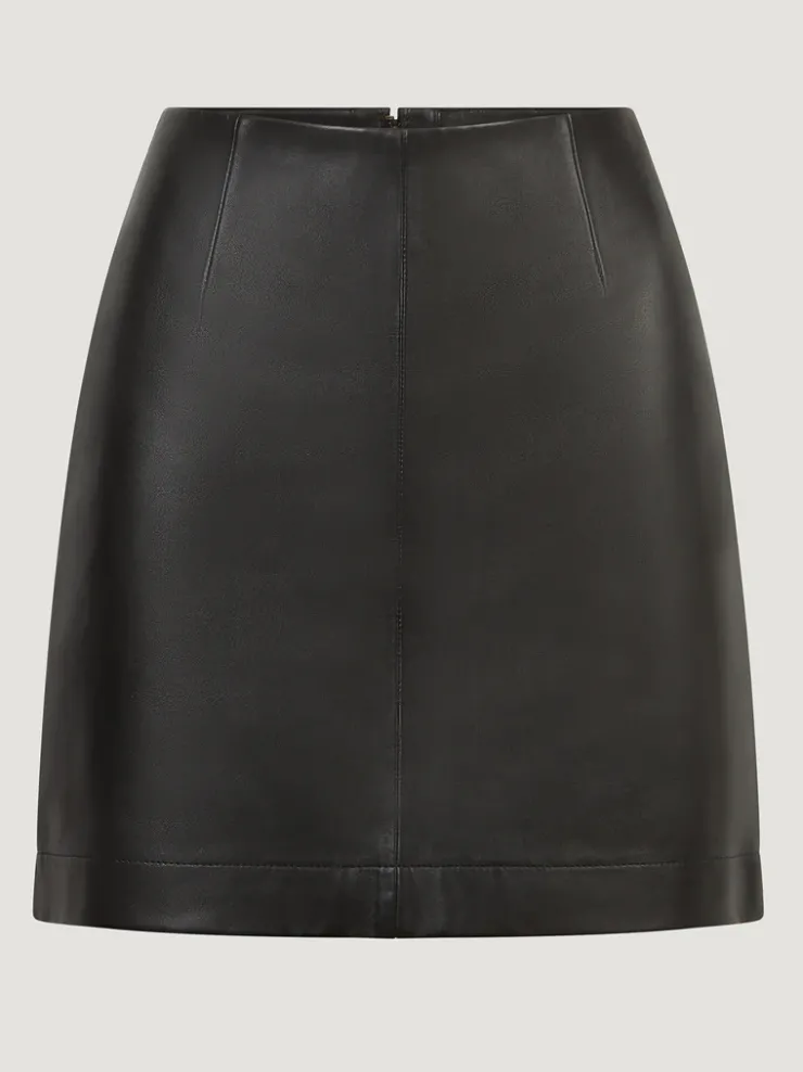 Mini jupe droite.Coloris noirDeux fentes sur les côtésFermeture par un zip dosEntièrement doubléeFabriquée en Inde