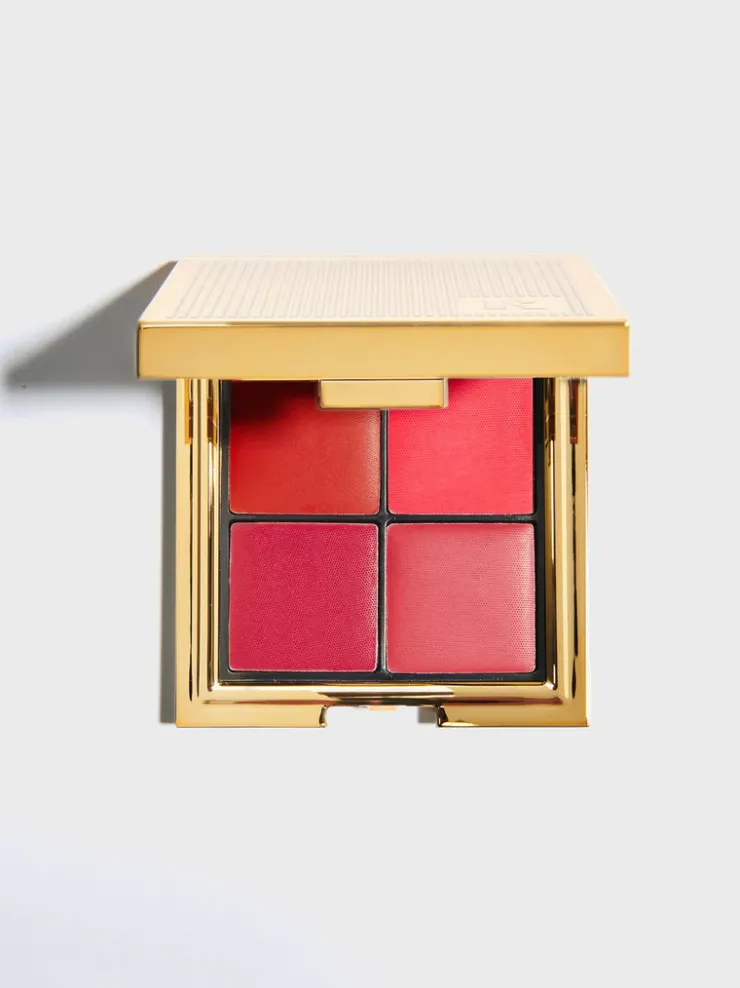 La Palette Chaleur propose quatre teintes chaudes, crémeuses et fondantes : rouge passion, rose corail, fuchsia et rose naturel. Elles peuvent être mélangées pour un résultat unique et une intensité sur mesure. Tamponnez les couleurs au doigt sur vos lèvres, vos joues et même vos yeux. Présenté dans un élégant boîtier doré, elle vous suivra partout.