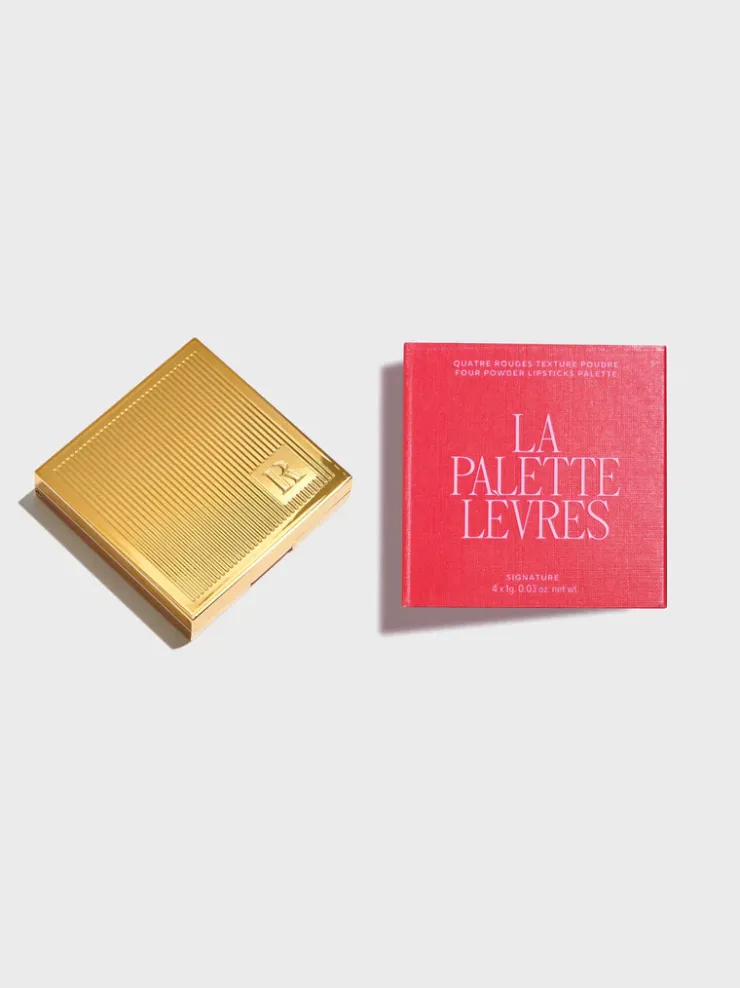 La Palette Signature propose quatre teintes classiques, crémeuses et fondantes : rouge passion, nude rosé, et prune profond et rouge pourpre. Elles peuvent être mélangées pour un résultat unique et une intensité sur mesure. Tamponnez les couleurs au doigt sur vos lèvres, vos joues et même vos yeux. Présenté dans un élégant boîtier doré, elle vous suivra partout.