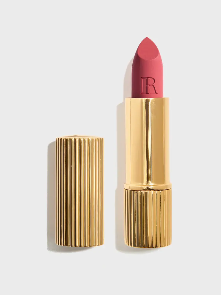 Le Rouge, notre rouge à lèvres mat iconique à la formule naturelle, glisse sur les lèvres. Grâce à ses 86% d’ingrédients d’origine naturelle, la formule est légère et la couleur intense. Disponible en six teintes iconiques parfaites pour un effet bouche mordue. La teinte Hélène : un nude rosé.