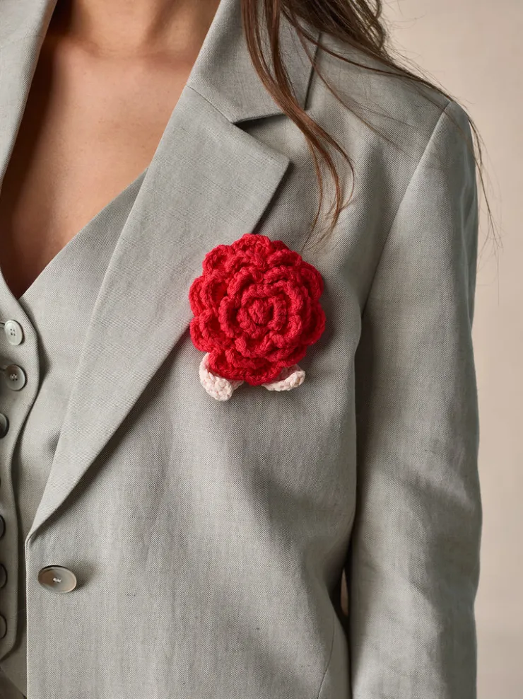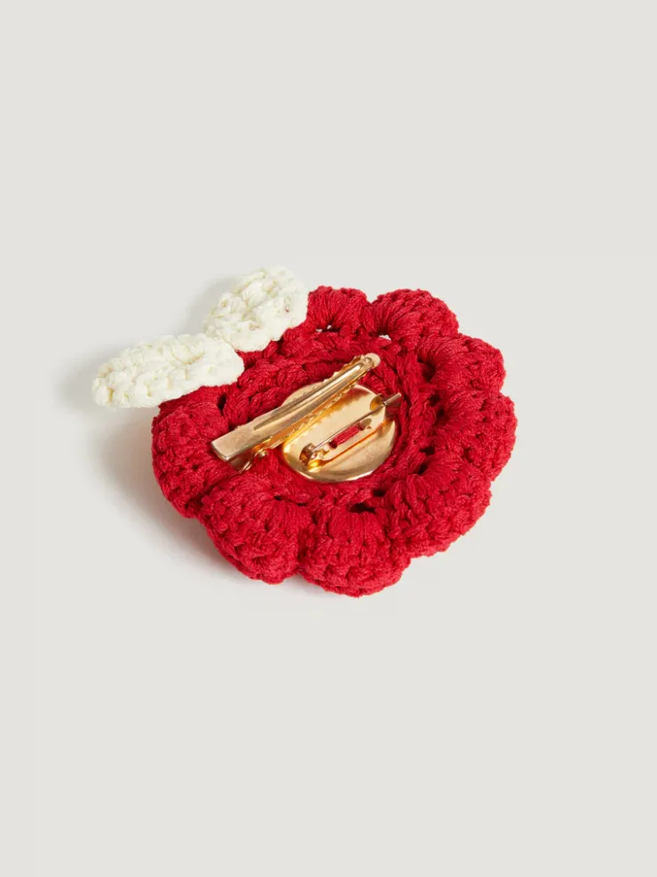 Broche fleur en crochet oversize.Coloris rougeAttache pince croco Fabriquée en Chine