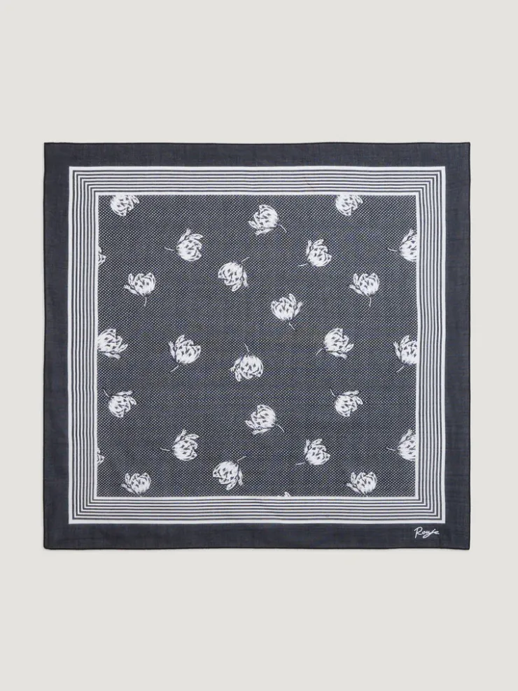 Foulard en coton carré.Imprimé champs de tulipe marineDimensions : 55×55 cmLogo Rouje en bas à droiteFabriqué en Ita…