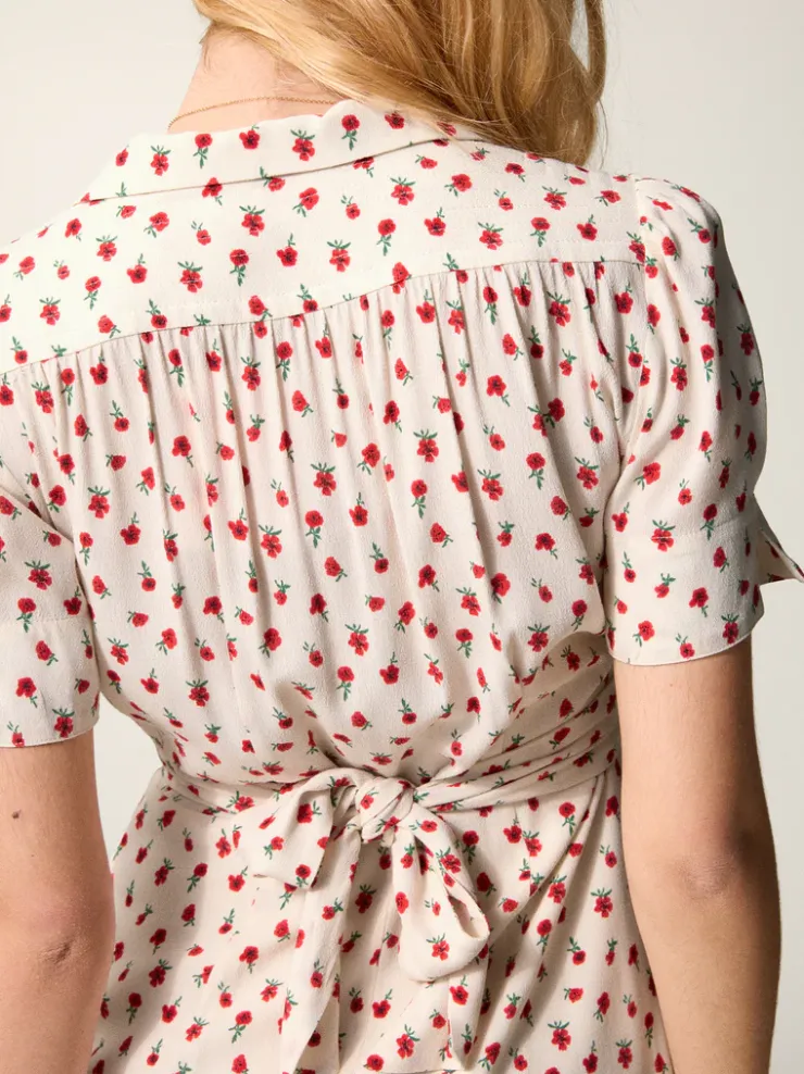 Robe cache cœur ceinturée à manches courtes.Imprimé fleurette sauvage écruCol chemiseBoutons effet nacre sur le bus…