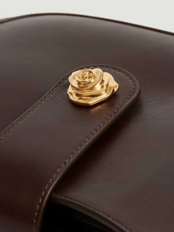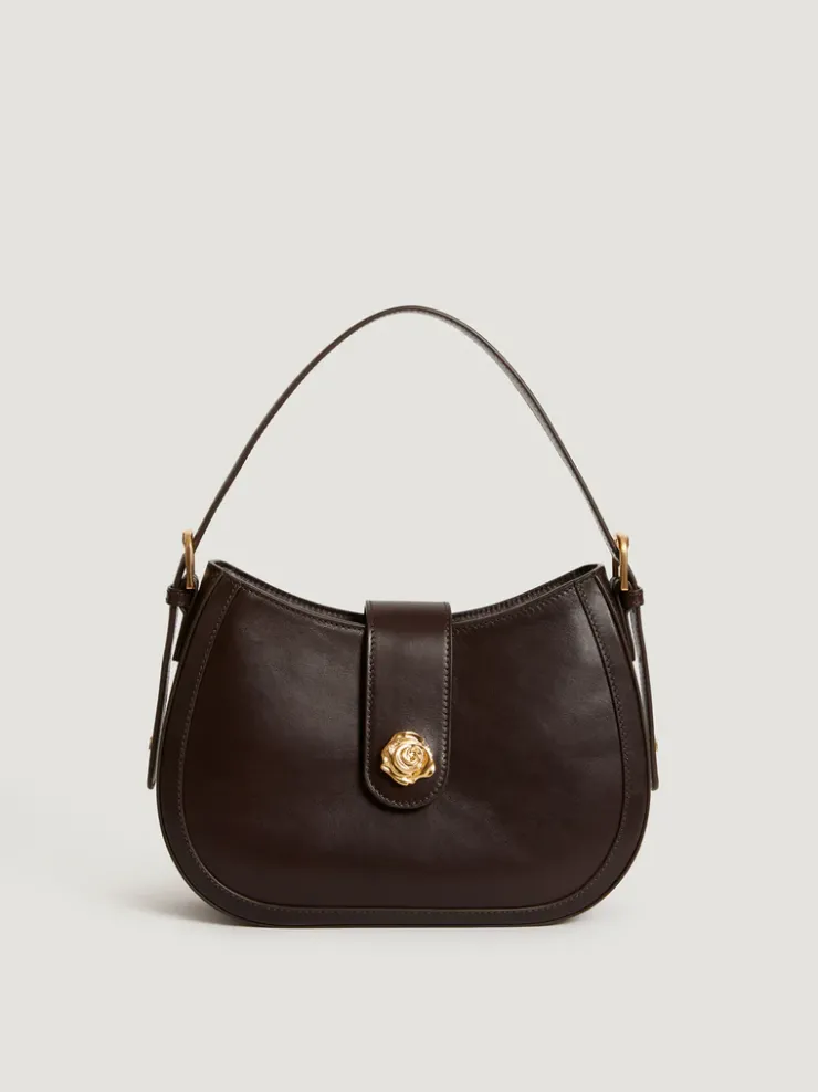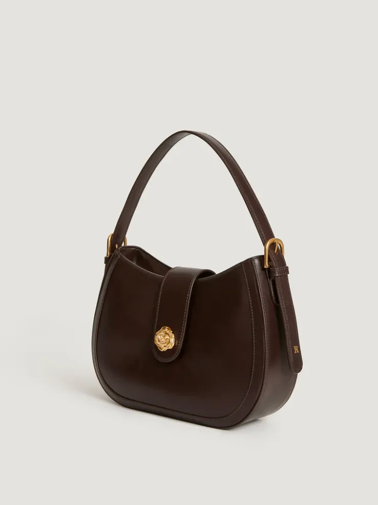 Sac en cuir.Coloris marronSe porte à l’épauleFermeture à zipAnse réglable et marquée « R » doréDécoré d’une rose d…