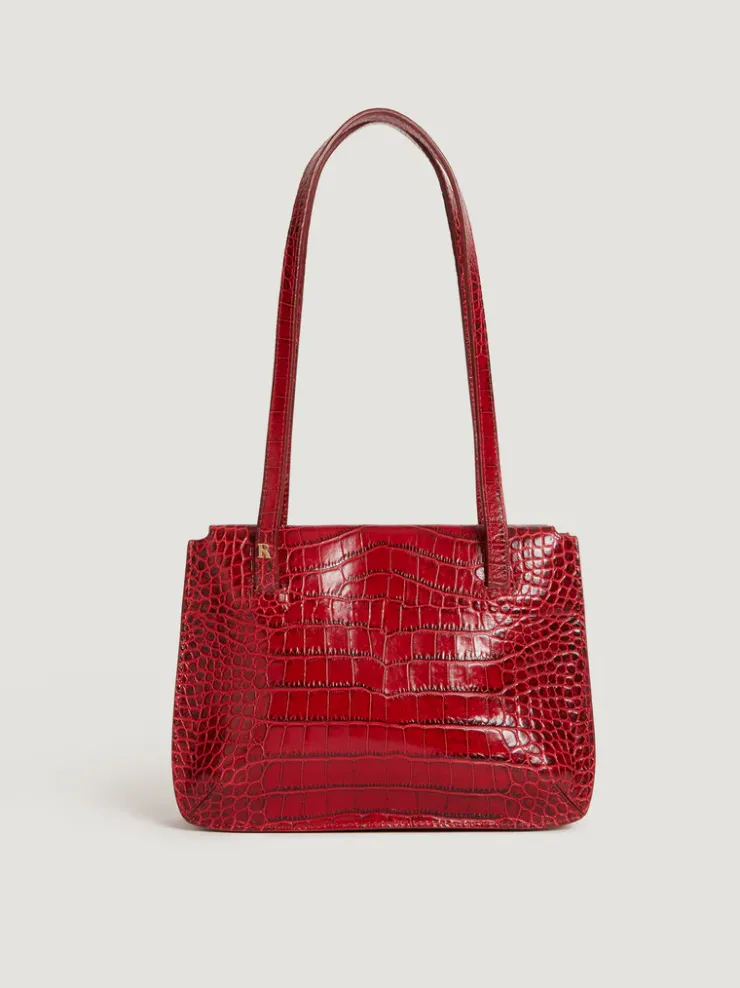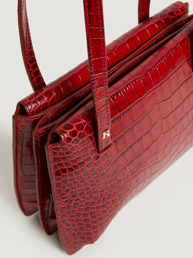 Sac à main en cuir aspect croco.Coloris rougeTrois compartiments intérieursDeux rabats intérieursAnse de 45 cmFabriqu…