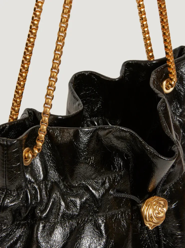 Sac en cuir.Cuir vernis aspect craquelé vintage coloris noirSe porte à l’épaule, à la main ou en bandoulièreAnse en…
