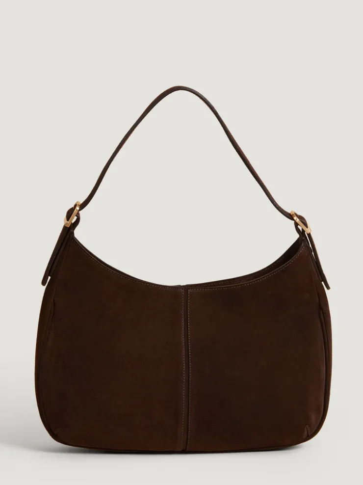 Grand sac en suede.Coloris ébèneDoublure contrastantePoche intérieureFabriqué en Italie