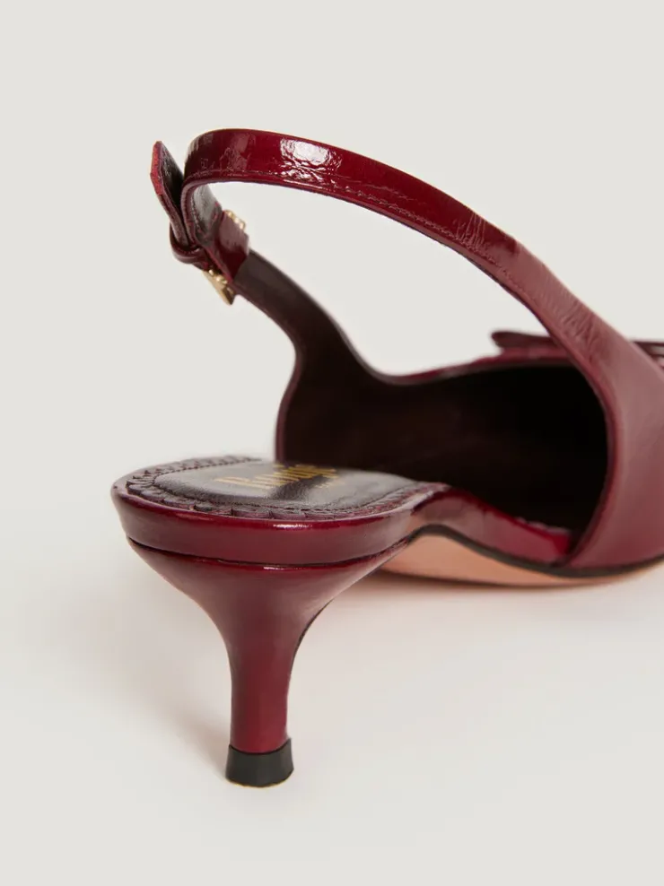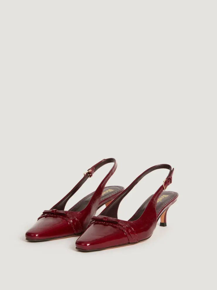 Escarpins en cuir vernis façon slingback.Coloris bordeauxHauteur du talon : 4,5 cmNoeud à l’avant et finition croquetB…