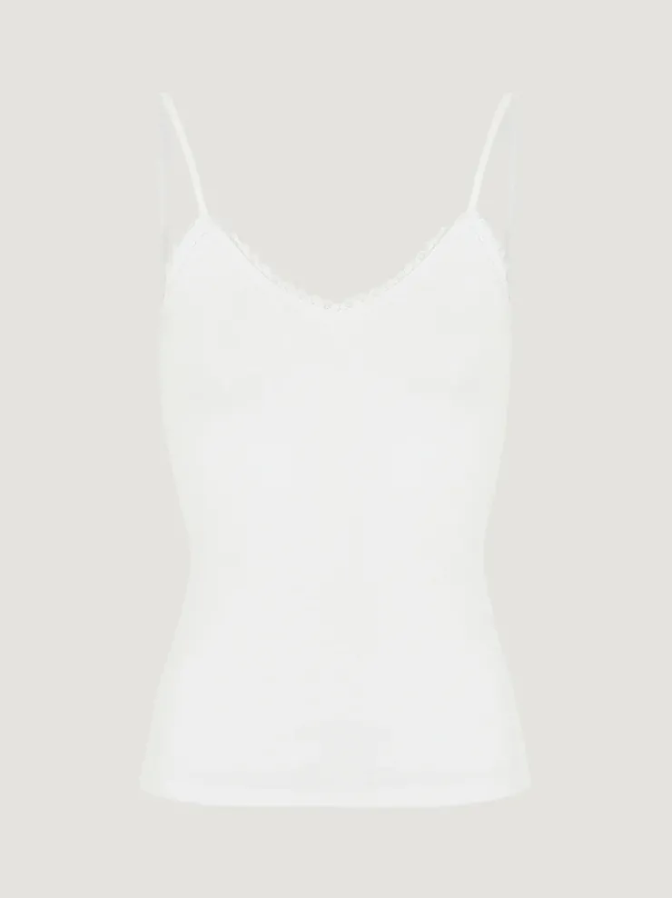 Top en jersey avec bretelles fines.Coloris blancDentelle au décolletéFines bretelles ajustablesMatière côteléeFabri…